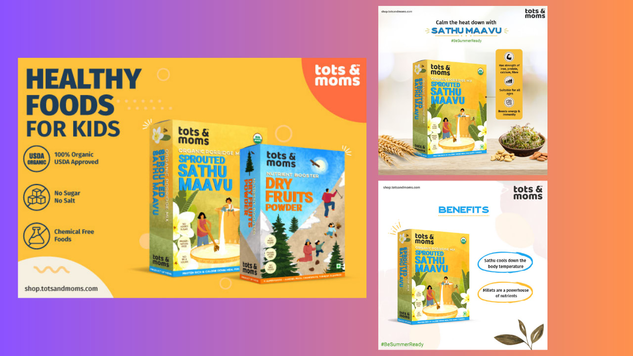 Tots n Moms is a baby product and maternity apparel as well as food brand. To design the packaging, I used soft colors and gentle illustrations to create a calming and trustworthy look. The packaging is clear, informative, and includes playful elements to engage young parents.