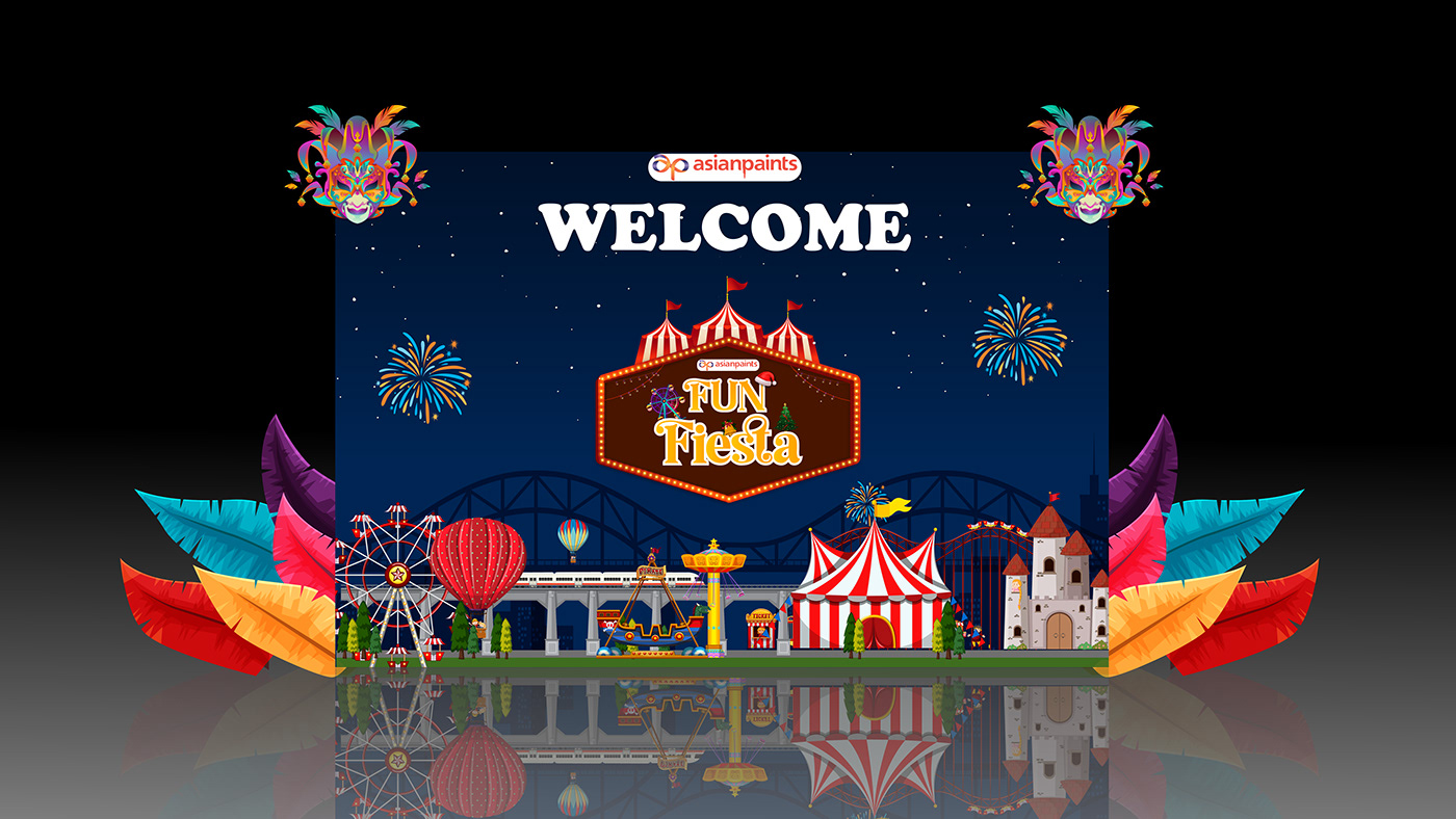 This project showcases the welcome and entry experience for a themed corporate carnival. The design combines playful illustrations, bright lighting effects, and festive elements to set the mood from the moment guests arrive. The goal was to create excitem...