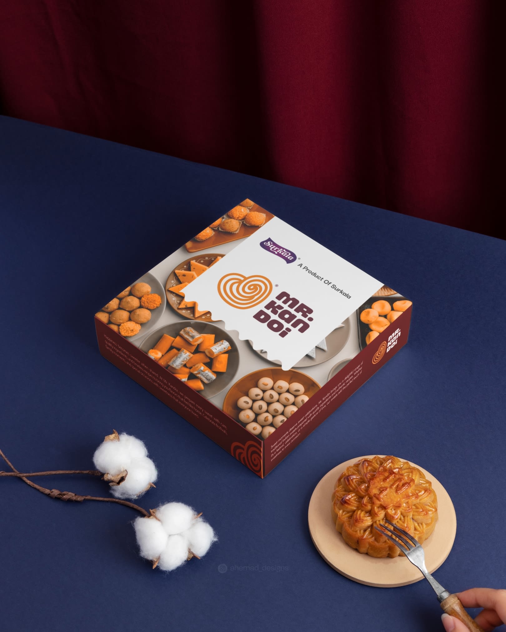 Brand identity designed for Mr. Kandoi, inspired by the familiar forms of traditional Indian sweets.