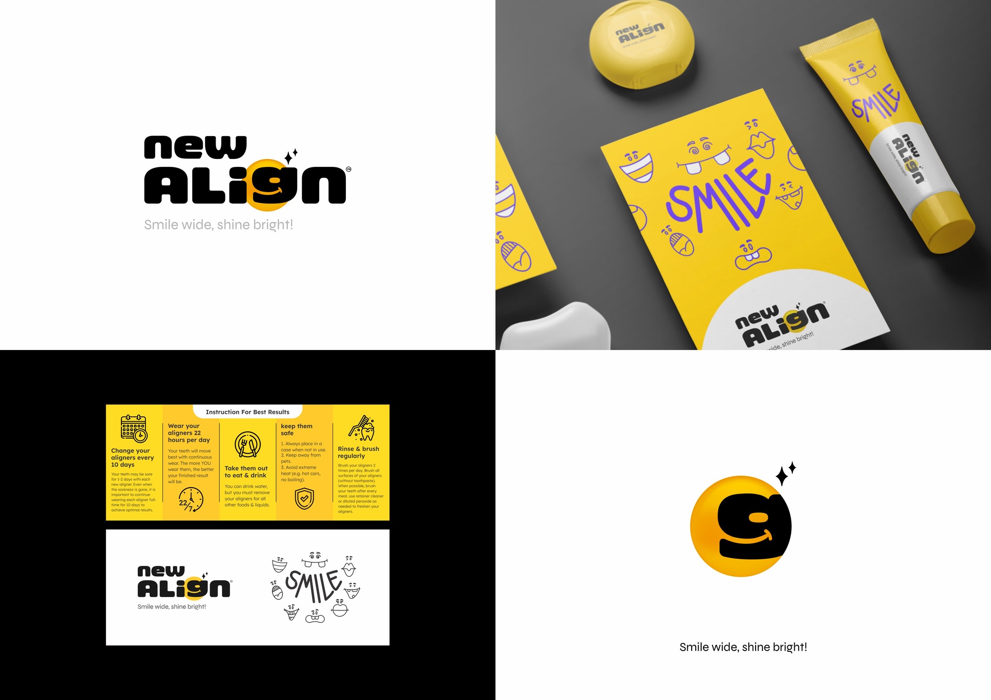 New Align is a dental brand identity designed to make dental care feel more approachable and positive.