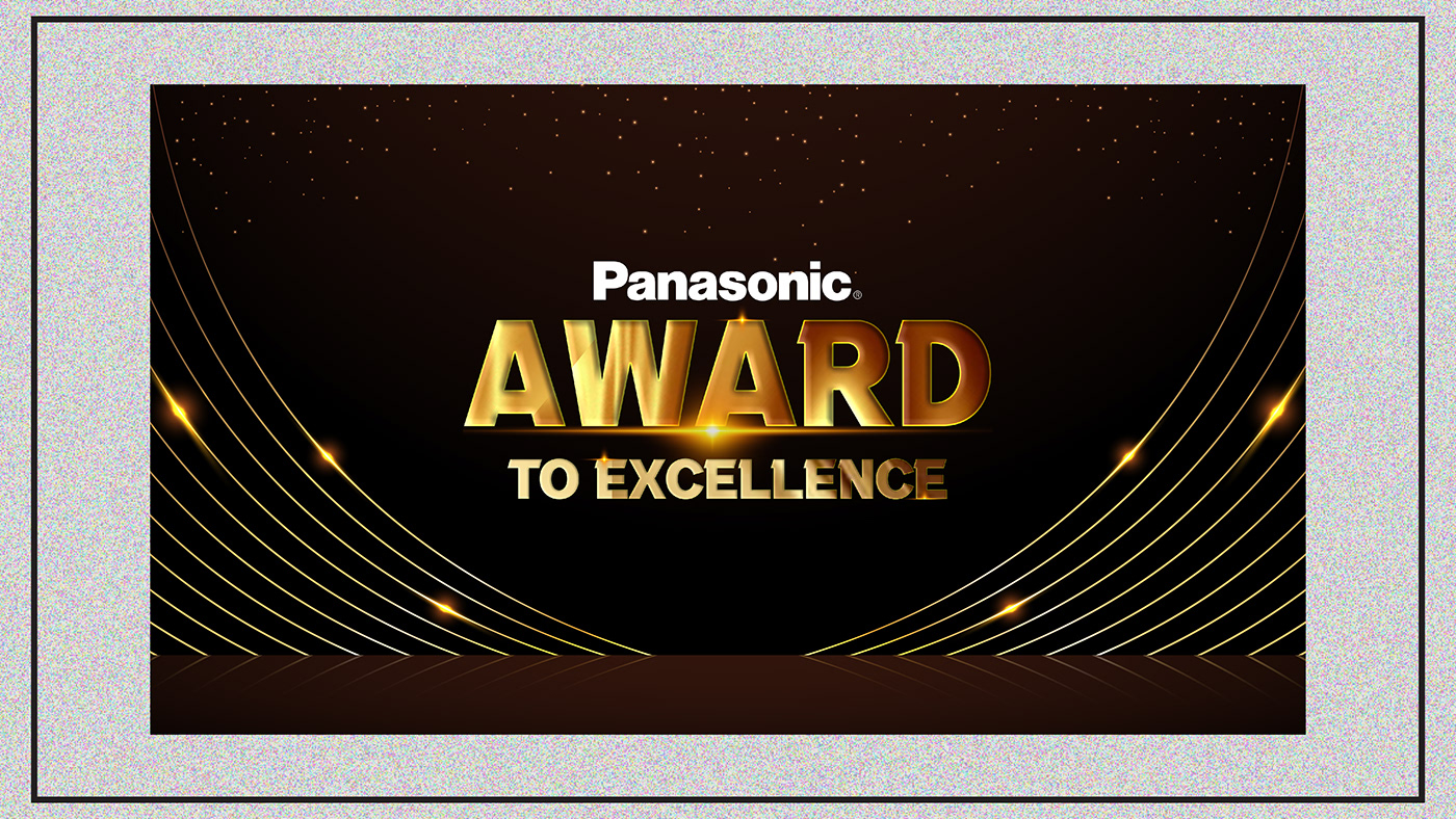 A premium award design concept for Panasonic’s “Award to Excellence,” featuring elegant gold typography and a refined corporate visual style that represents achievement, quality, and brand excellence.