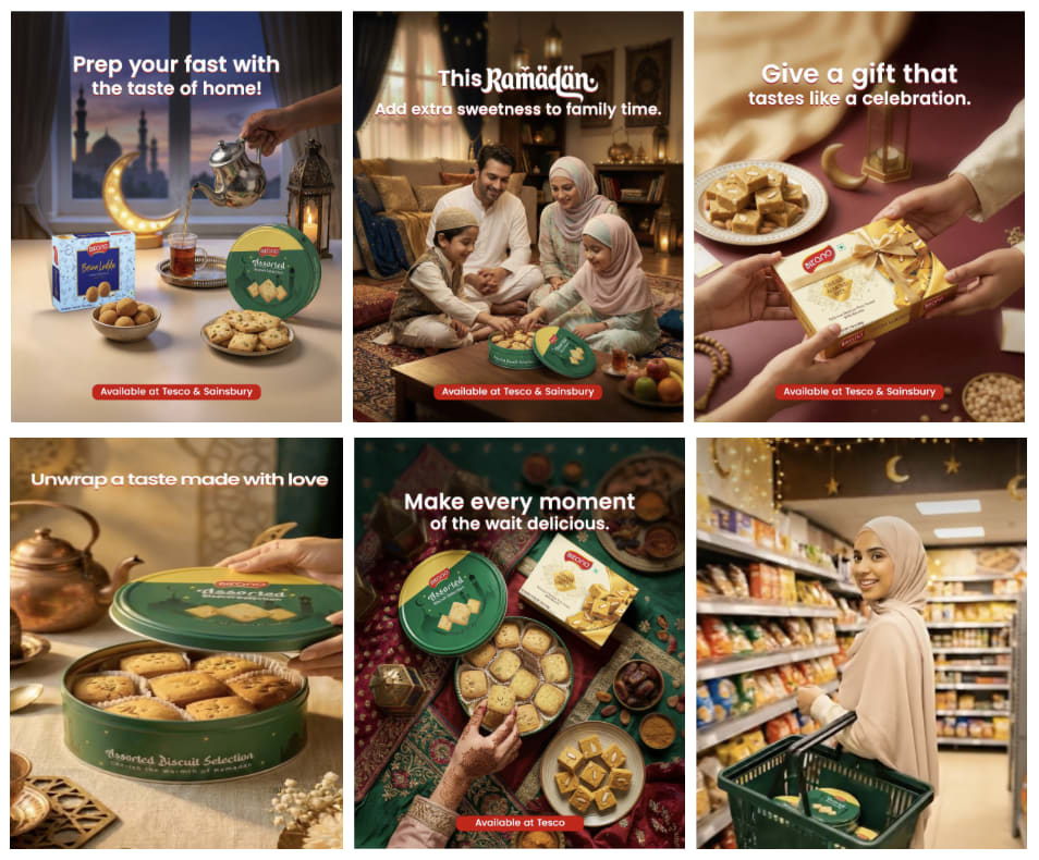 For Bikano UK, a dedicated Ramadan campaign was created to align the brand with seasonal cultural moments and engage audiences through emotionally relevant storytelling. The goal was to build a cohesive Ramadan-themed content feed across formats.