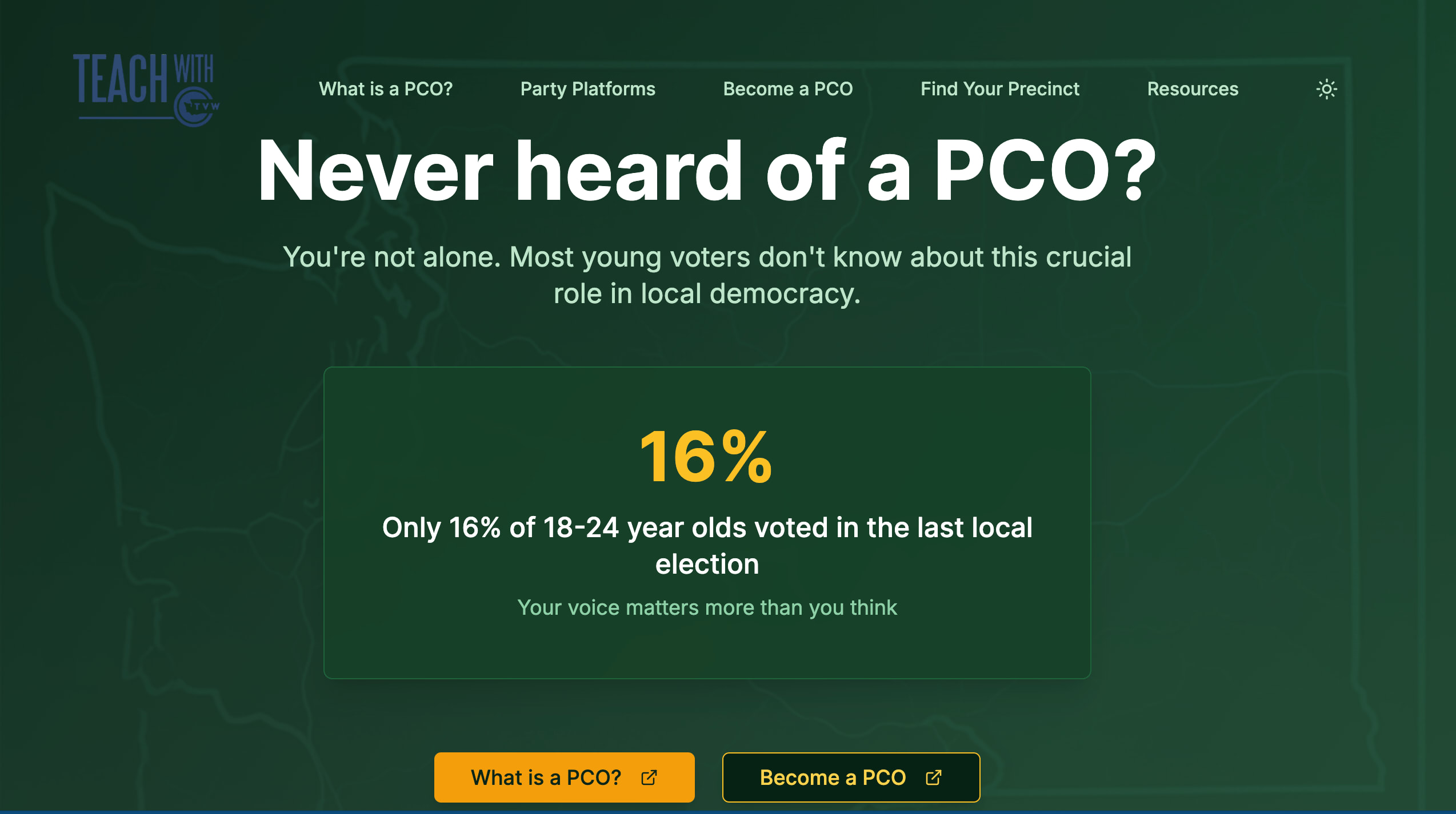 Led the end-to-end product delivery of PCO Connect, a statewide civic education website designed to increase political engagement among Washington State residents, particularly young voters (18-24), by demystifying the role of Precinct Committee Officers (PCOs).