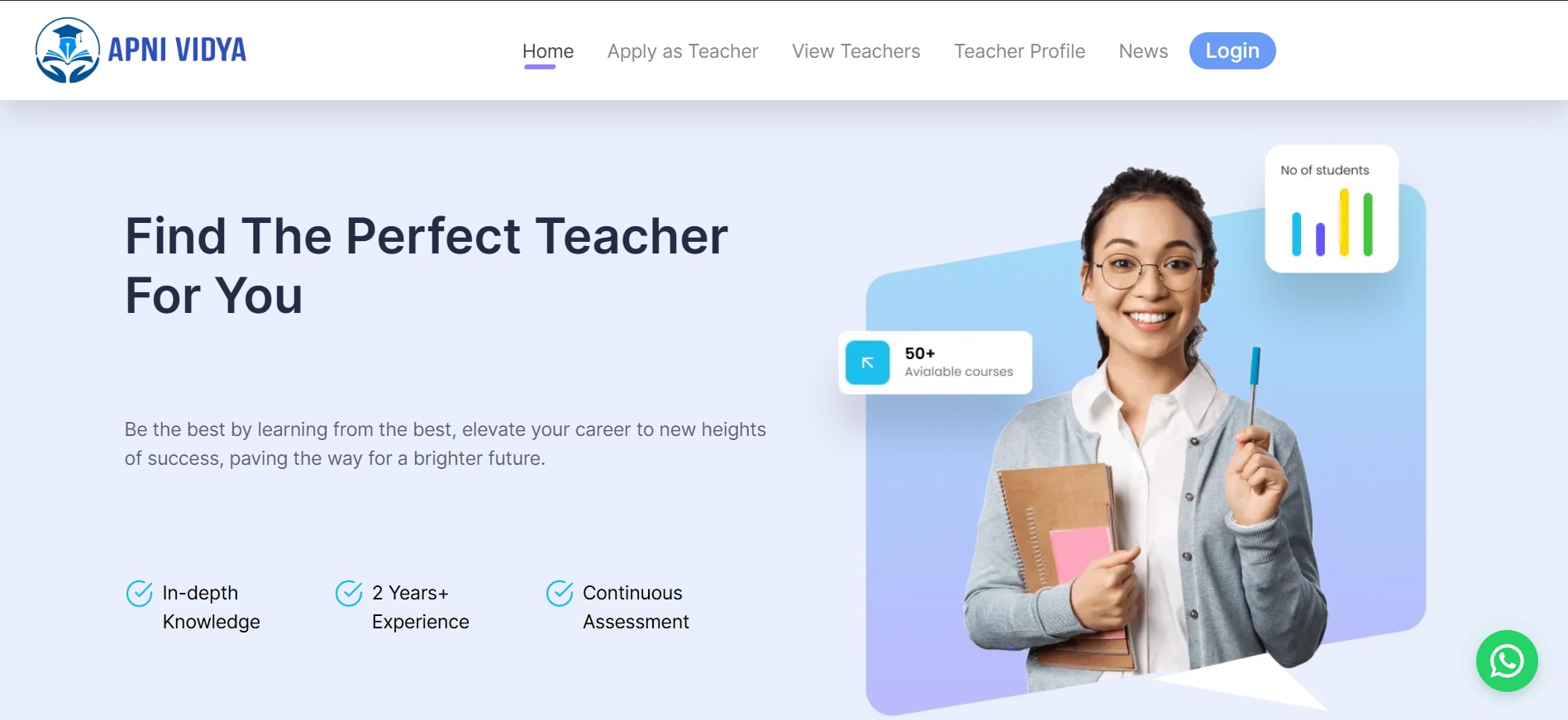 Apni Vidya is a online platform made for students and teachers for connecting with each other. Students can find online courses and also teachers for private tuition. And this platform also provides students to teachers who want to provide private tuitions.