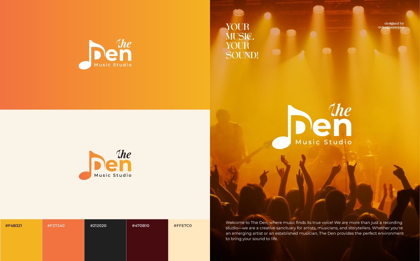Last year, I was approached by a client to design a logo for their music studio, The Den, which produces original compositions, remakes, and also handles dubbing projects. Throughout the process, I designed several versions of the logo to capture the essence of the brand. After careful review, the client selected one design that best represented their vision.