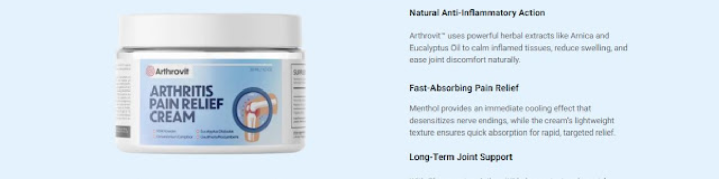 Arthrovit Arthritis Pain Relief Cream Australia is a natural cream made to help reduce joint pain, swelling, and stArthroviiffness from arthritis, sports injuries, or aging joints.