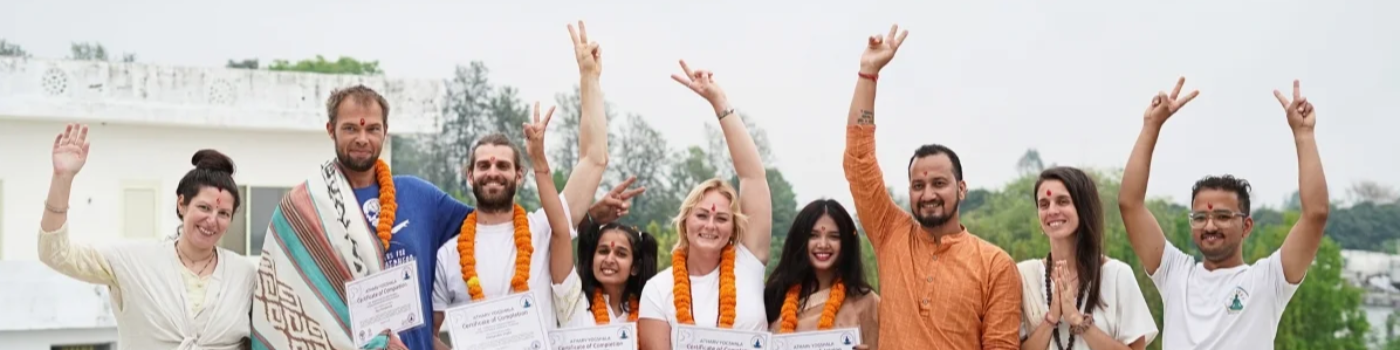 Atharv Yogshala is recognized as one of the best yoga schools in Rishikesh, offering authentic, guru-led training in a peaceful ashram environment.