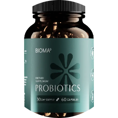 Bioma is a synbiotic formula combining probiotics, prebiotics, and postbiotics. It seeds your gut with good bacteria, feeds them to grow, and protects the gut lining with butyrate.