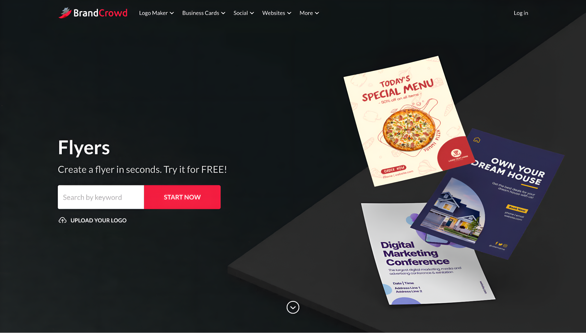 BrandCrowd is a flyer maker that prioritizes design quality through professional designer verification. Every template is created by experienced designers and checked for originality, ensuring your flyers stand out rather than look generic. The drag-and-drop editor makes customization simple, even for complete beginners.