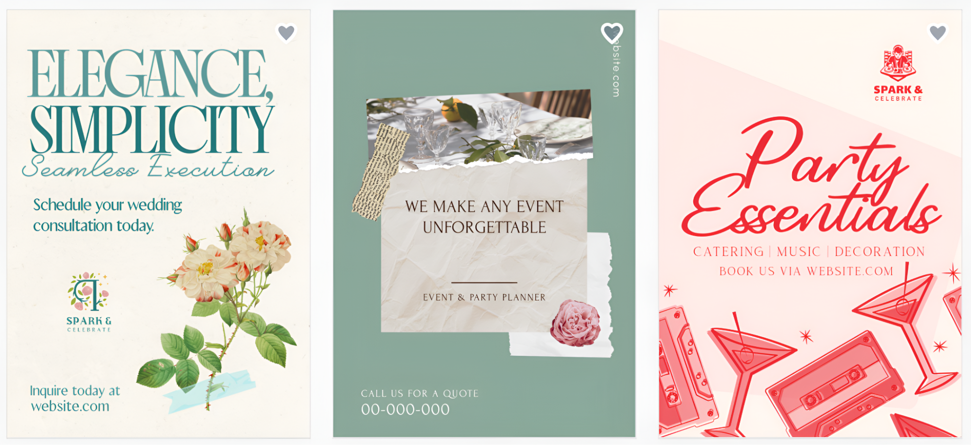 Just type in "events" or "party planner" in the search bar, and you get a strong set of polished, ready-to-customize flyer templates right away. No blank canvas, no guesswork.