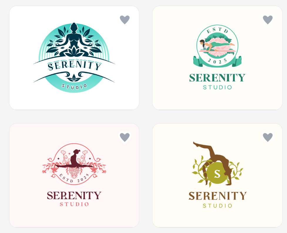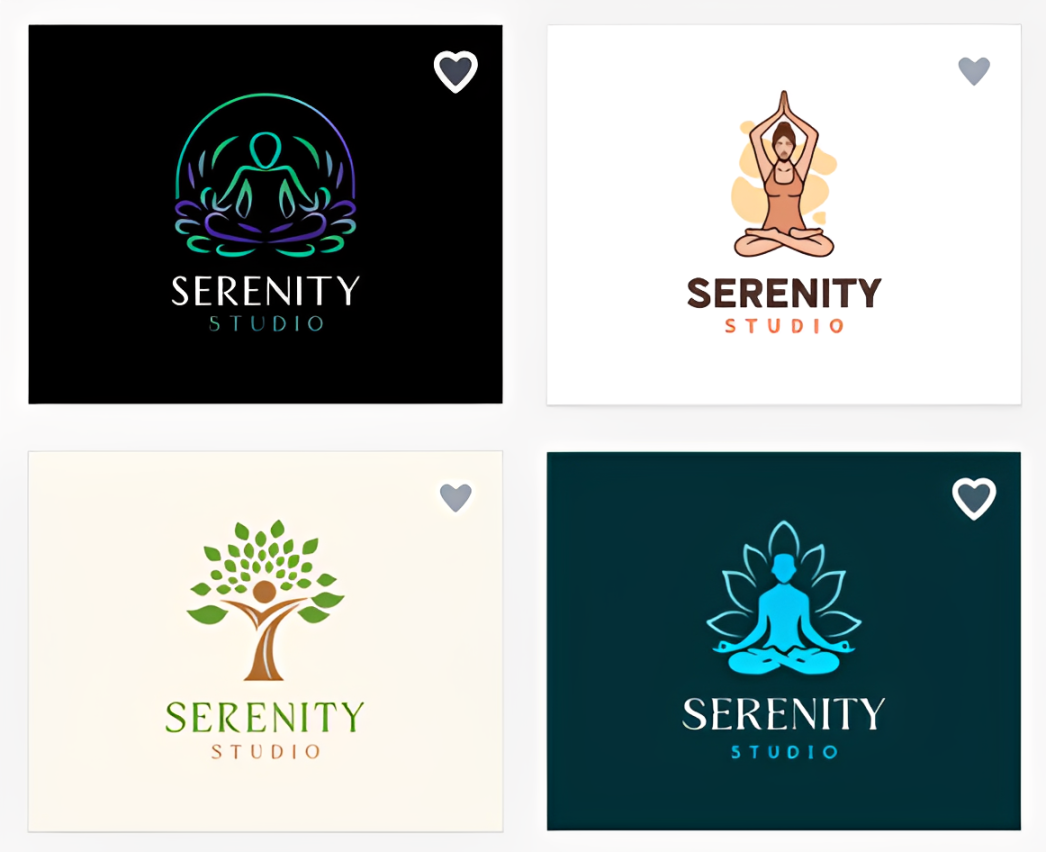 We generated a wide range of logo concepts - from calming, nature-inspired emblems to sleek minimalist designs and expressive yoga illustrations. Whether you want to convey a sense of zen, a premium feel, or a holistic lifestyle, it’s easy to find a direction that perfectly aligns with your brand vision.