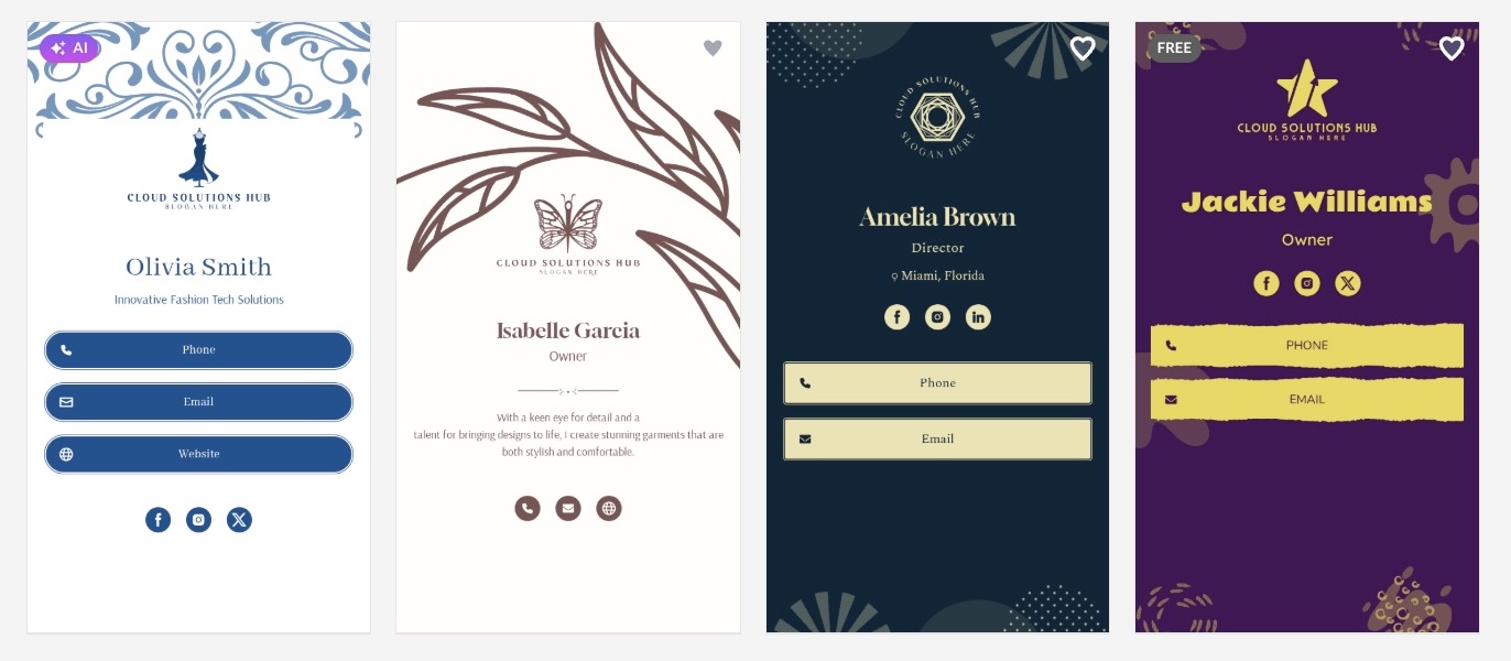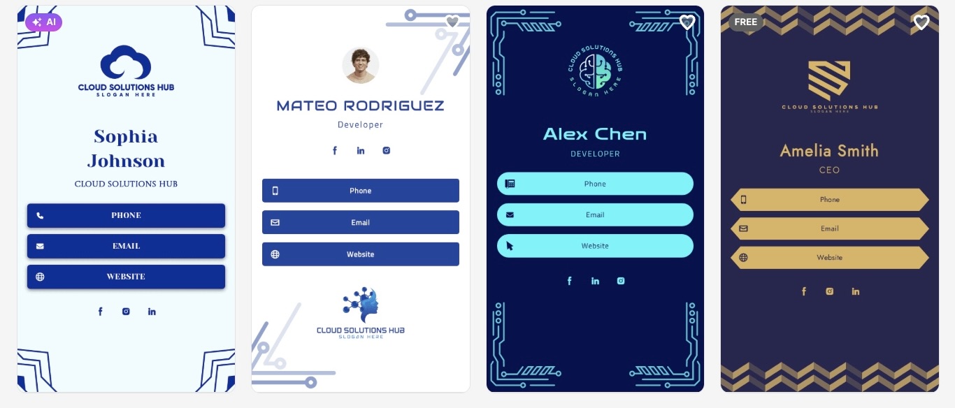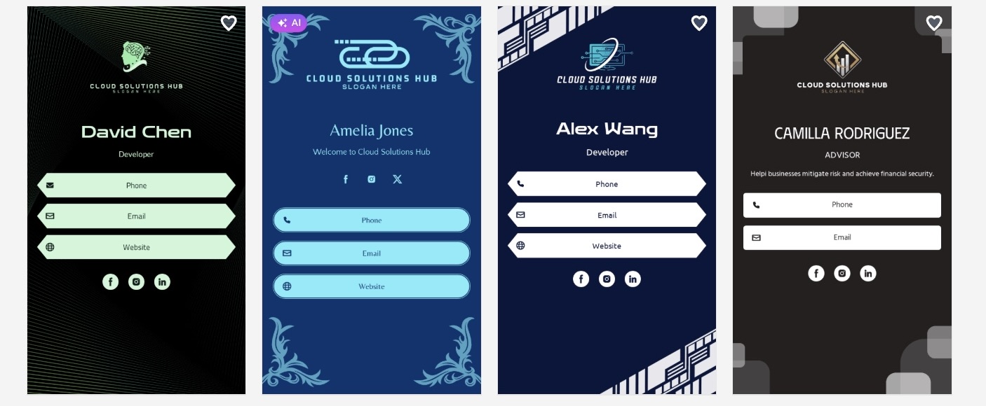 Here are some sample cards we came across when testing with the company name Cloud Solutions Hub: