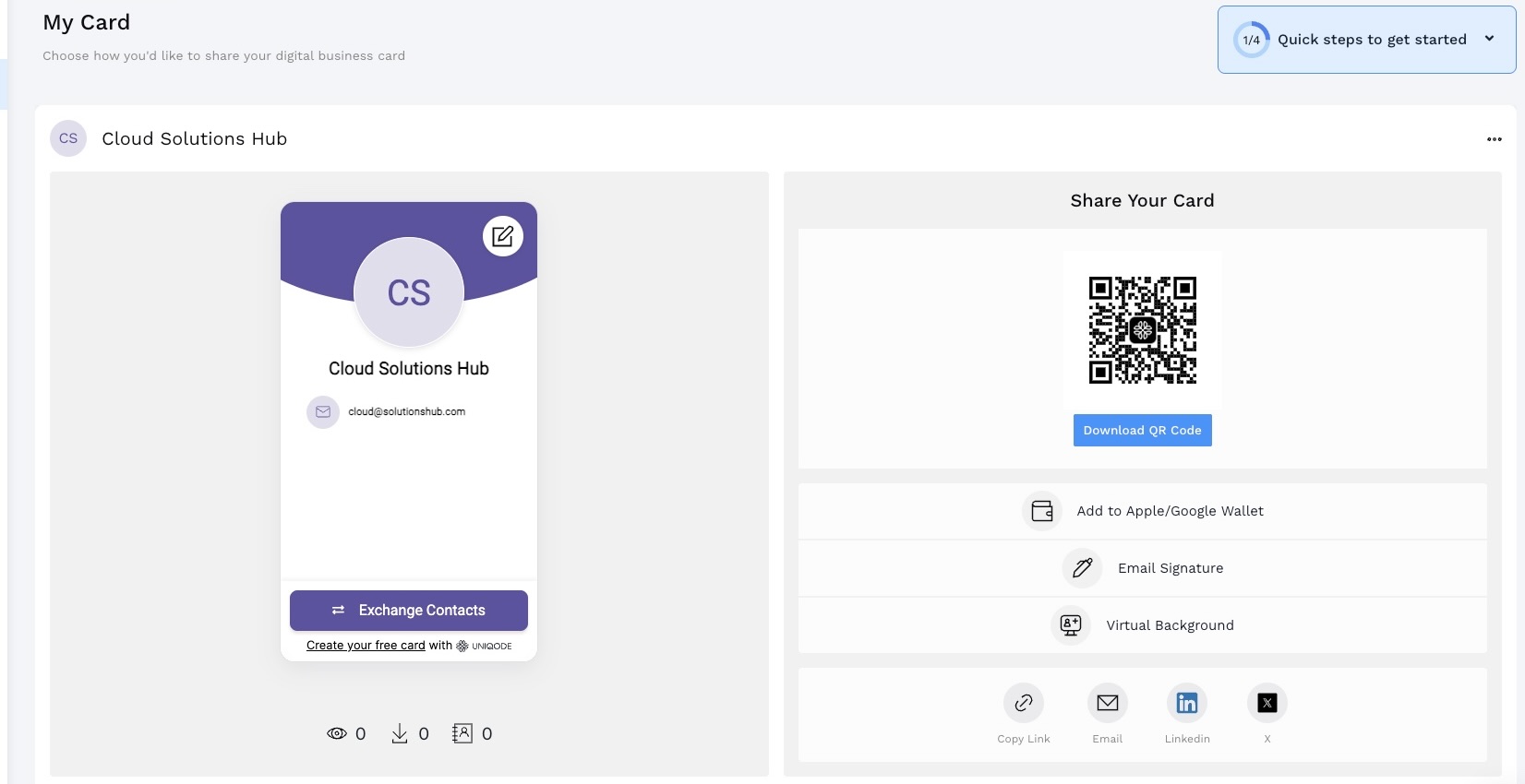 Uniqode focuses on tracking how your digital business card performs after it is shared. It records scans, link clicks, and interactions, which can be useful for users who want some data on how their card is being received.
