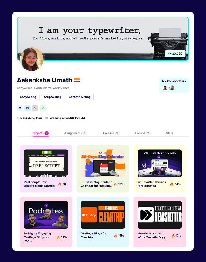 Aakanksha works at WLDD Private Limited as a copywriter, and the work she's doing is exceptional. But what really stands out is how she presents her work through her portfolio.