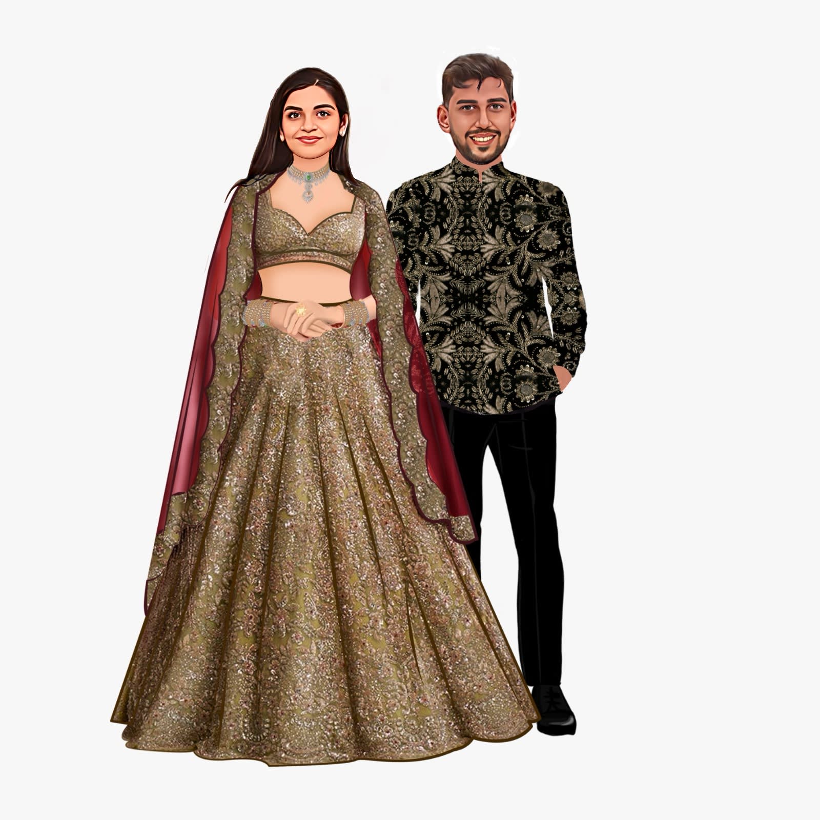 We are excited to see your skills in action! For this assignment, you will be working on combining facial caricatures with provided wedding caricature elements. Assignment Overview Your task is to: 1. Face Caricature Creation: Use given images to create face caricature of b...