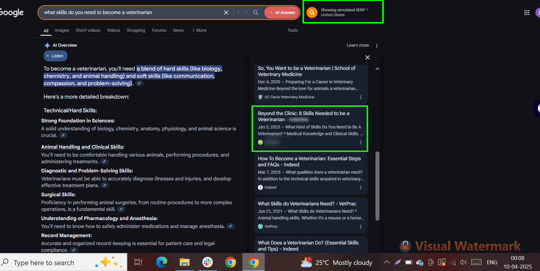 Created a topical map to identify supporting clusters (e.g., how to become a relief vet, day in the life, salary expectations)