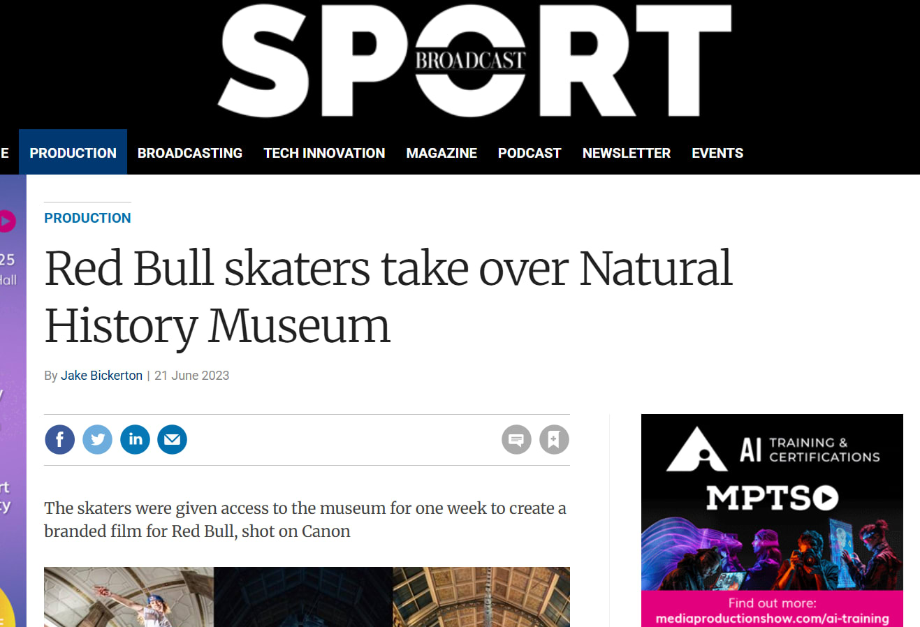 A crew of skateboarders were given access to the Natural History Museum to skate among the museum’s 80 million artefacts, while being filmed by Canon cameras for a film for Red Bull.