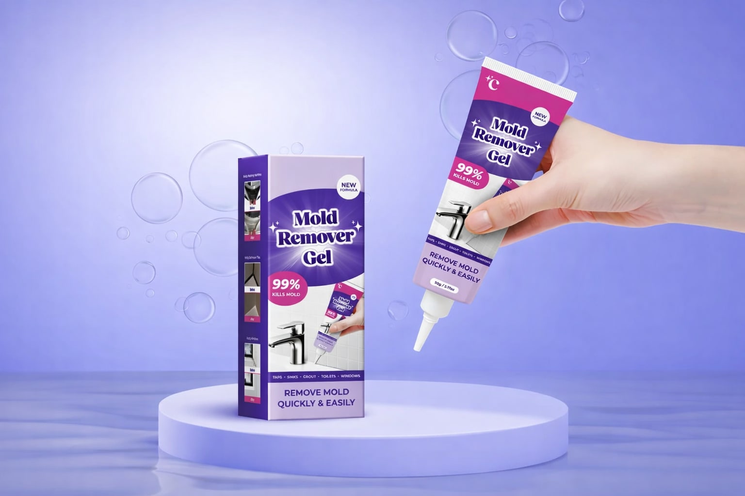 NuroClean is designed to start working within minutes of application. It breaks down mold stains and loosens buildup, making it easier to wipe or rinse away.