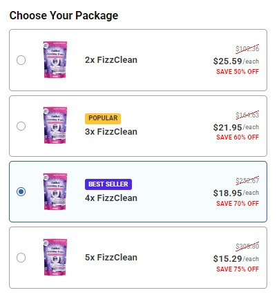 · 4x FizzClean: ($18.95 each) – Save 70% OFF