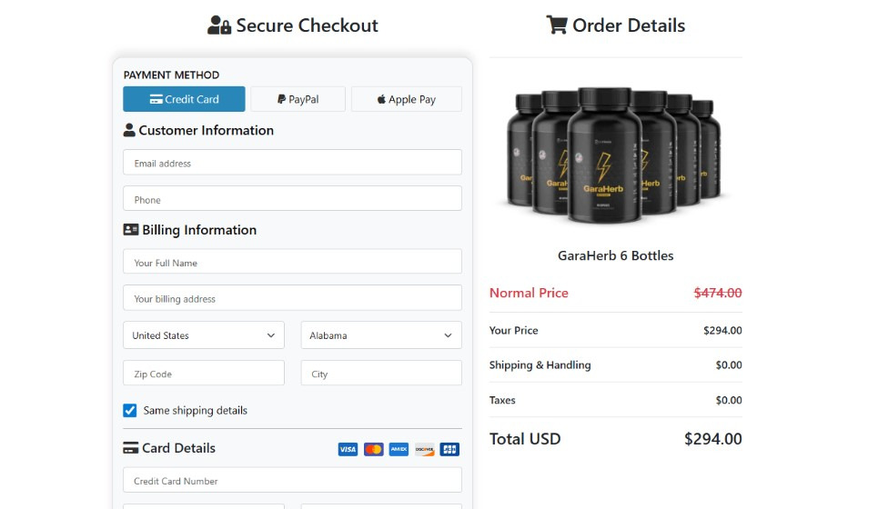 · 6 Bottles (180-day supply) – USD 294.00 (USD 49 per bottle) + free shipping