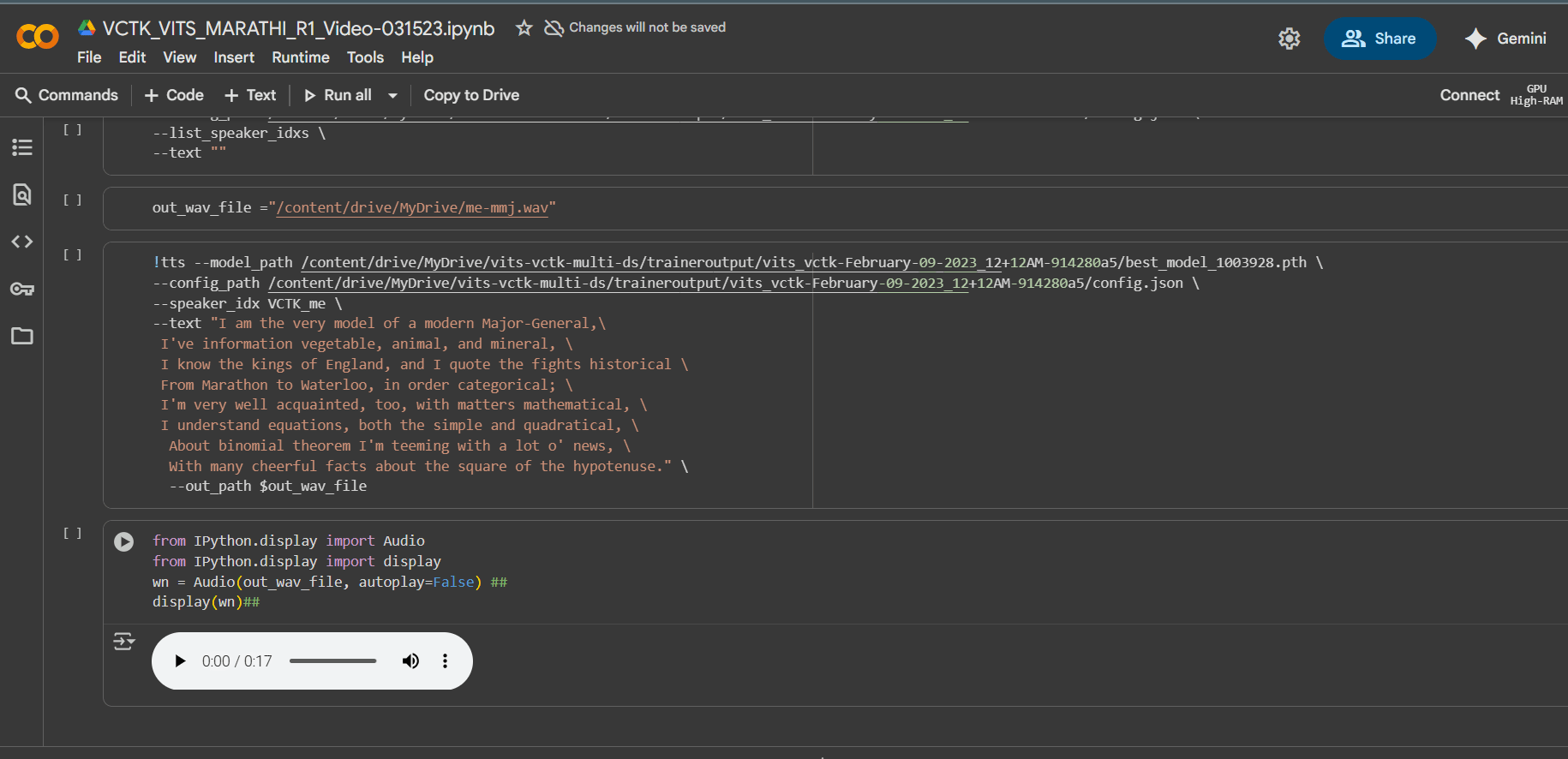 - Ensure that the Hindi dataset is available inside the Dataset folder. The Hindi data i used can be downloaded from here. The data should be formatted in a manner similar to LJSpeech_1.1 dataset for compatibility.