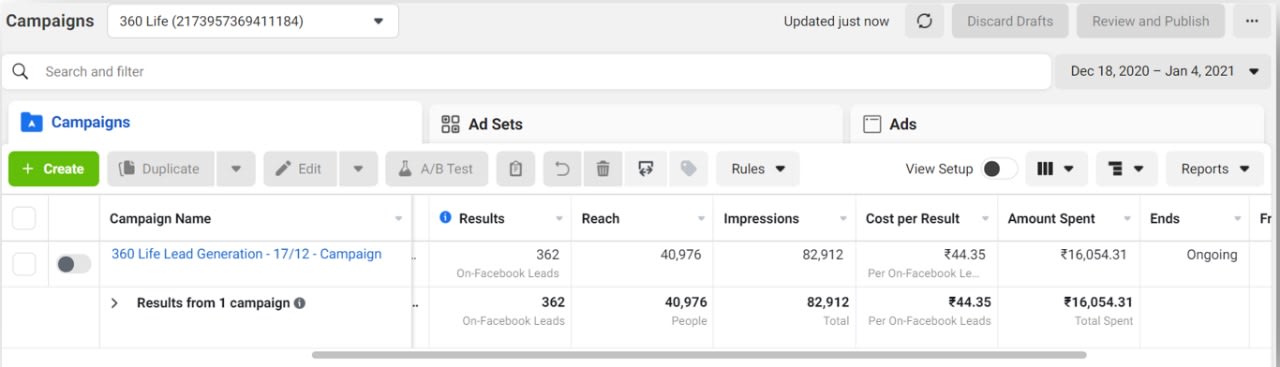 Campaign Performance (Dec 18, 2020 – Jan 04, 2021):