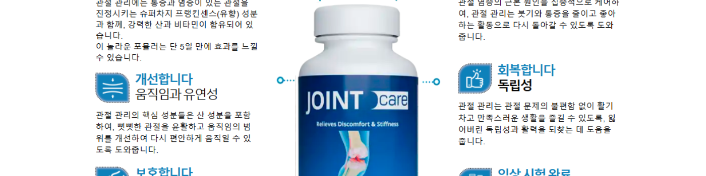 Joint Care South Korea is a nutritional supplement designed to promote joint lubrication, cartilage strength, and overall mobility.