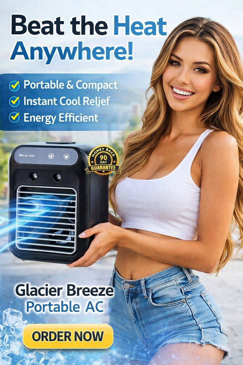 Glacier Breeze Portable AC is a compact, personal air cooling device designed to provide quick relief from heat. Unlike traditional air conditioners, it doesn’t require a window setup or professional installation. Instead, it works as an evaporative air cooler that uses water (or ice) to cool the surrounding air.