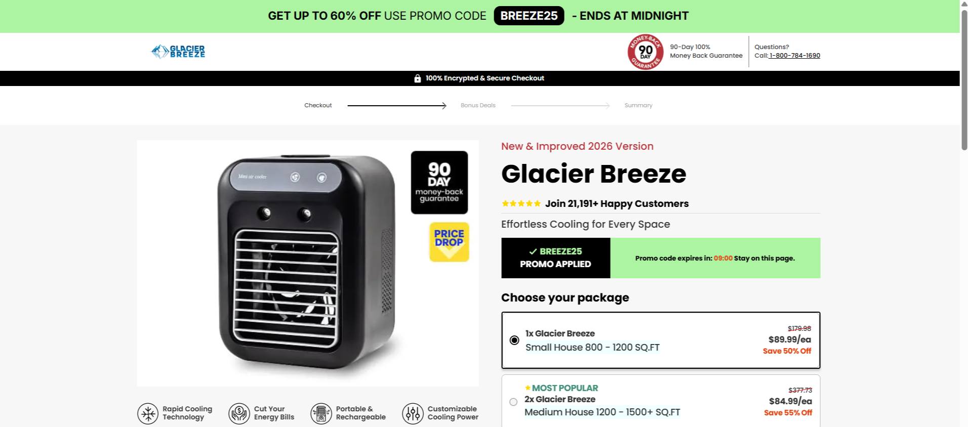 Glacier Breeze Portable AC is usually available online through official websites and e-commerce platforms. Pricing often varies depending on ongoing promotions.