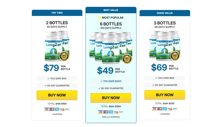 LungZen is sold primarily through its official website, where customers can choose from multiple package options depending on their needs and budget. Bulk purchases offer better value per bottle and additional perks like free shipping.