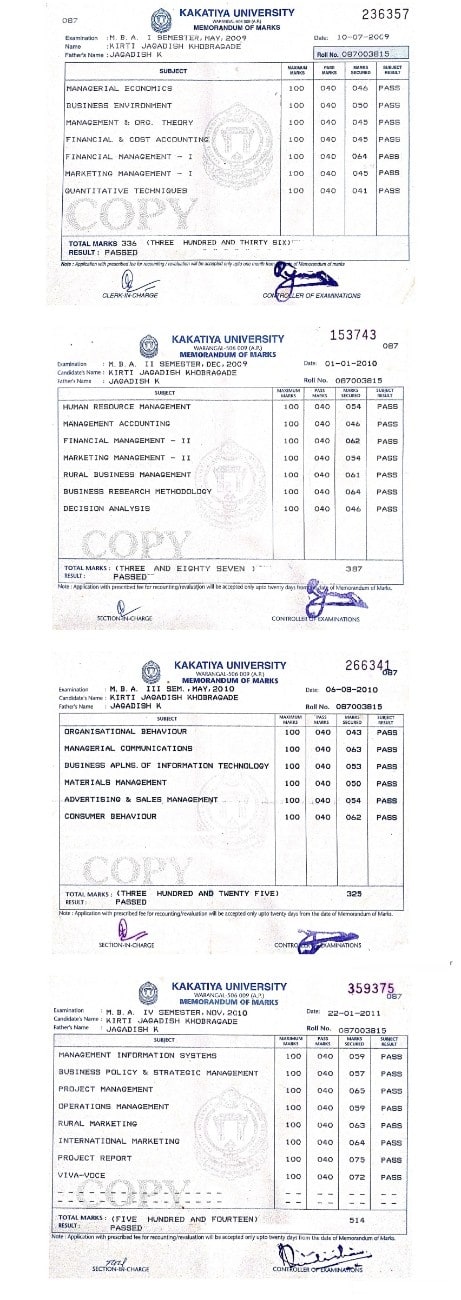 I have done my masters in MBA Marketing from Kakatiya University Warangal in 2011