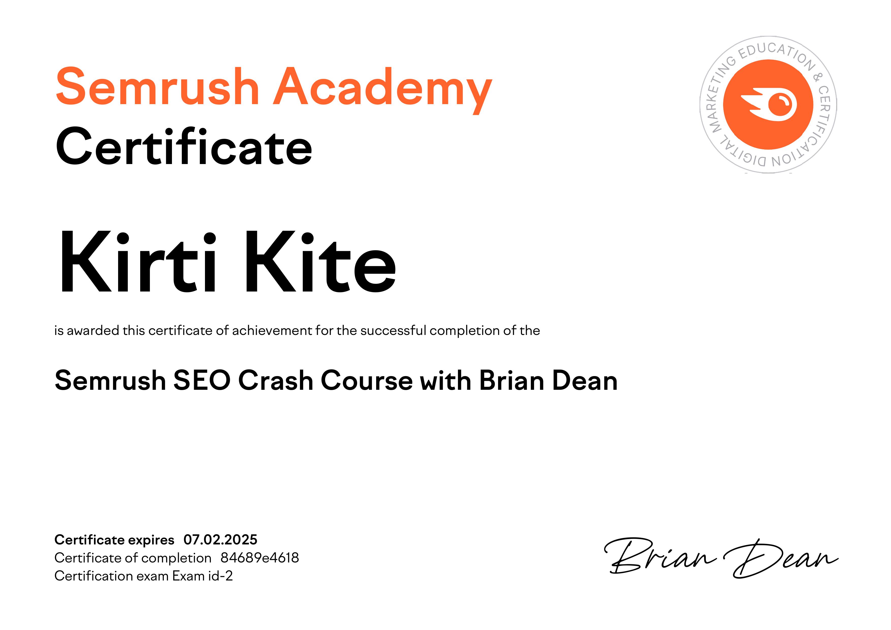 I have completed crash Course for Search Engine Marketing from Semrush Academy