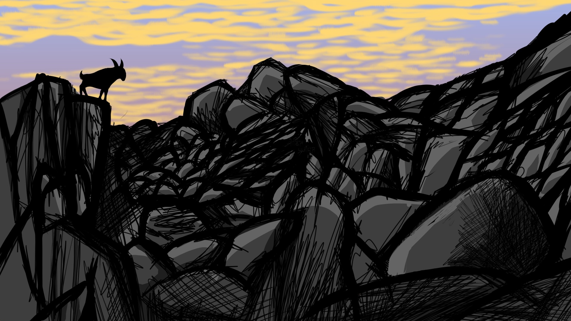 This is a personal project. This image shows a goat stand on cliff of a rocky mountain in sunrise hours. This image took me 1.5 hours to be complete.