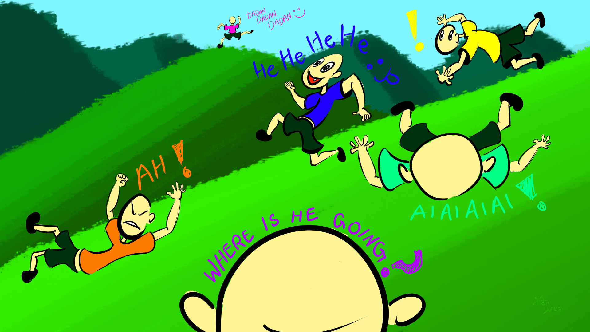 This is a personal project for children's book illustration in which there are six kid playing and enjoying their childhood being away from worldly problems. It took me 4 hours to create this image.