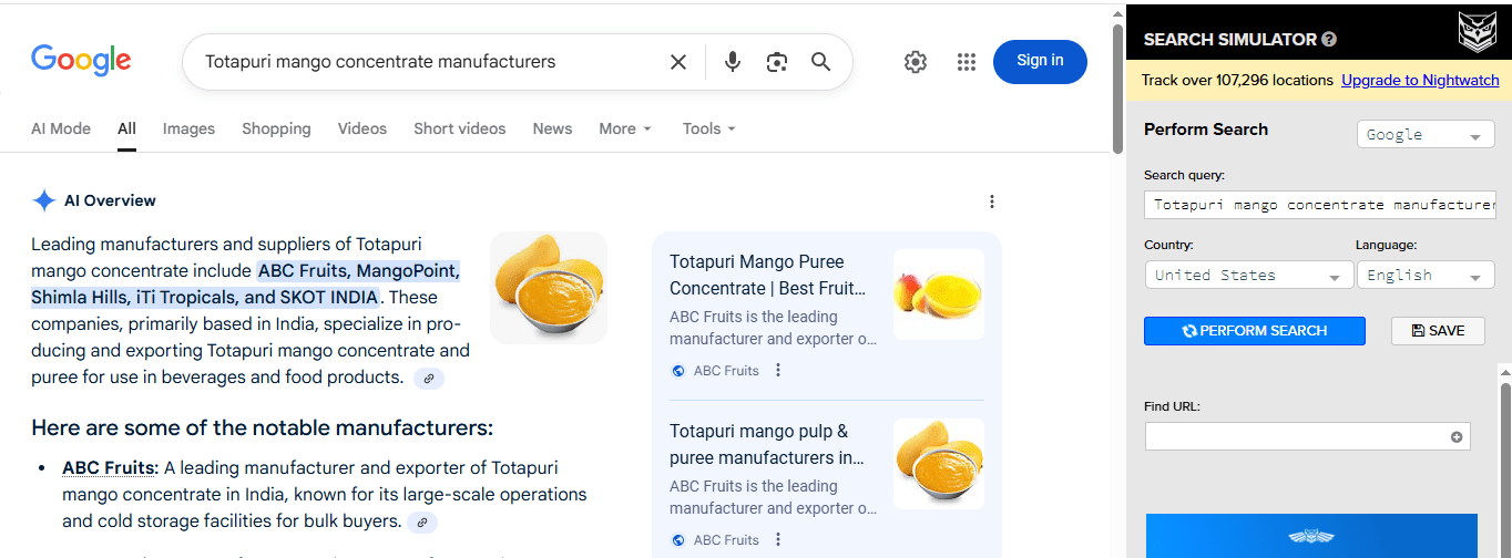 ๐Conducted international keyword research and identified U.S. demand for Totapuri mango products.