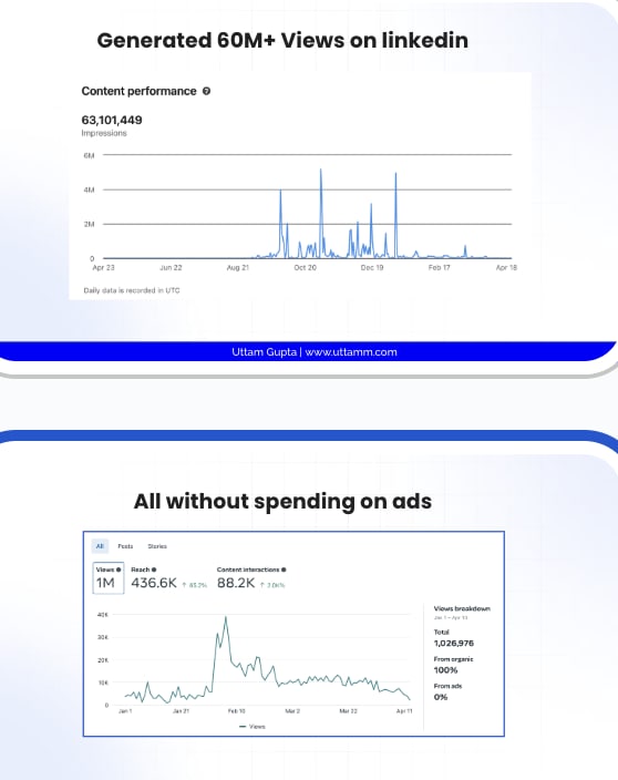 Follower growth: Scaled from 51K → 70K LinkedIn followers organically.