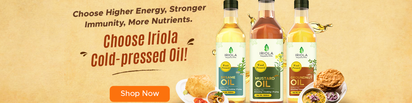 Buy pure & natural cold pressed oil from Iriola and give your family the gift of nutrition. Order now from range of healthy wood pressed oils for cooking.