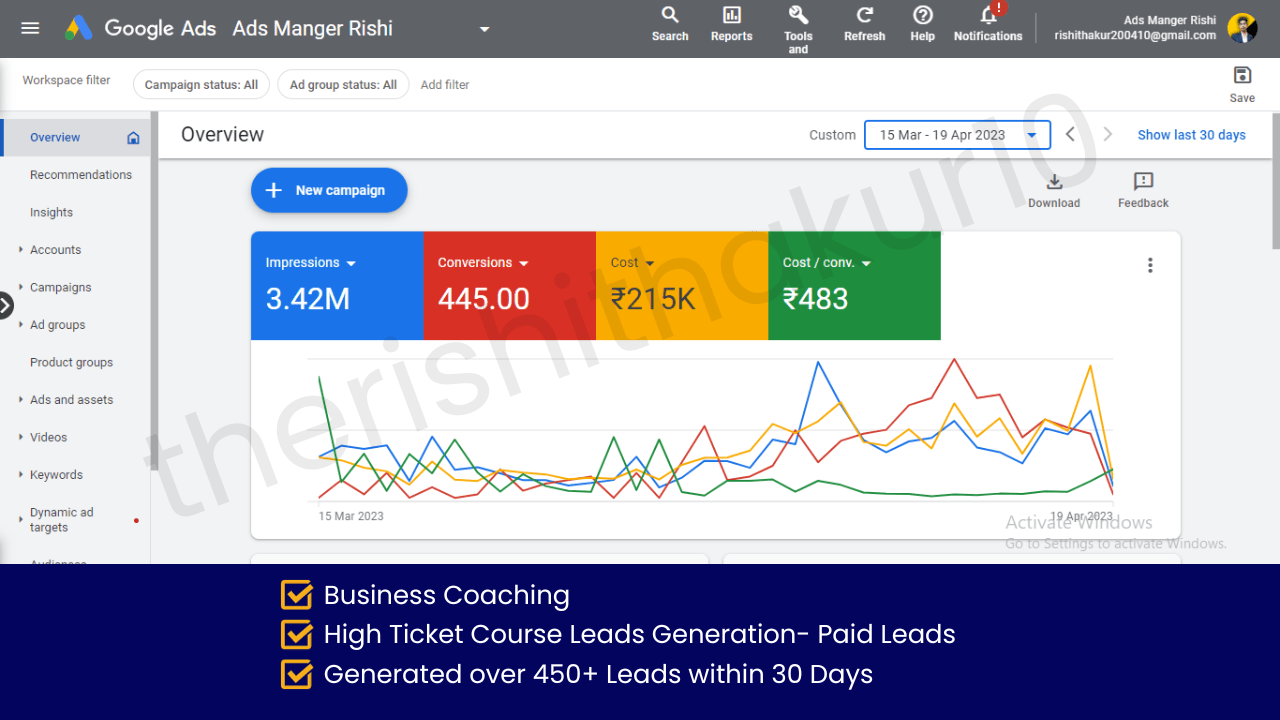 Generated over 450+ Paid Leads for High Ticket Business Coaching Funnel