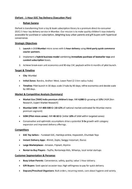 Transform EleFant from a subscription-based toy & book library into India’s fastest, hyperlocal D2C toy delivery platform, providing curated toys to children in under 1 hour while maintaining quality and operational efficiency.