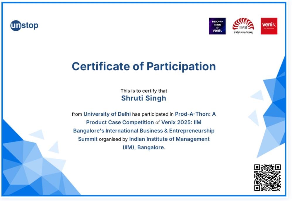 Participated in product case Competition couldn't win but I'm quite interested in case Competition and willingly doing it. IIMB case Competition was quite challenging and fun at the same had exposure while doing it