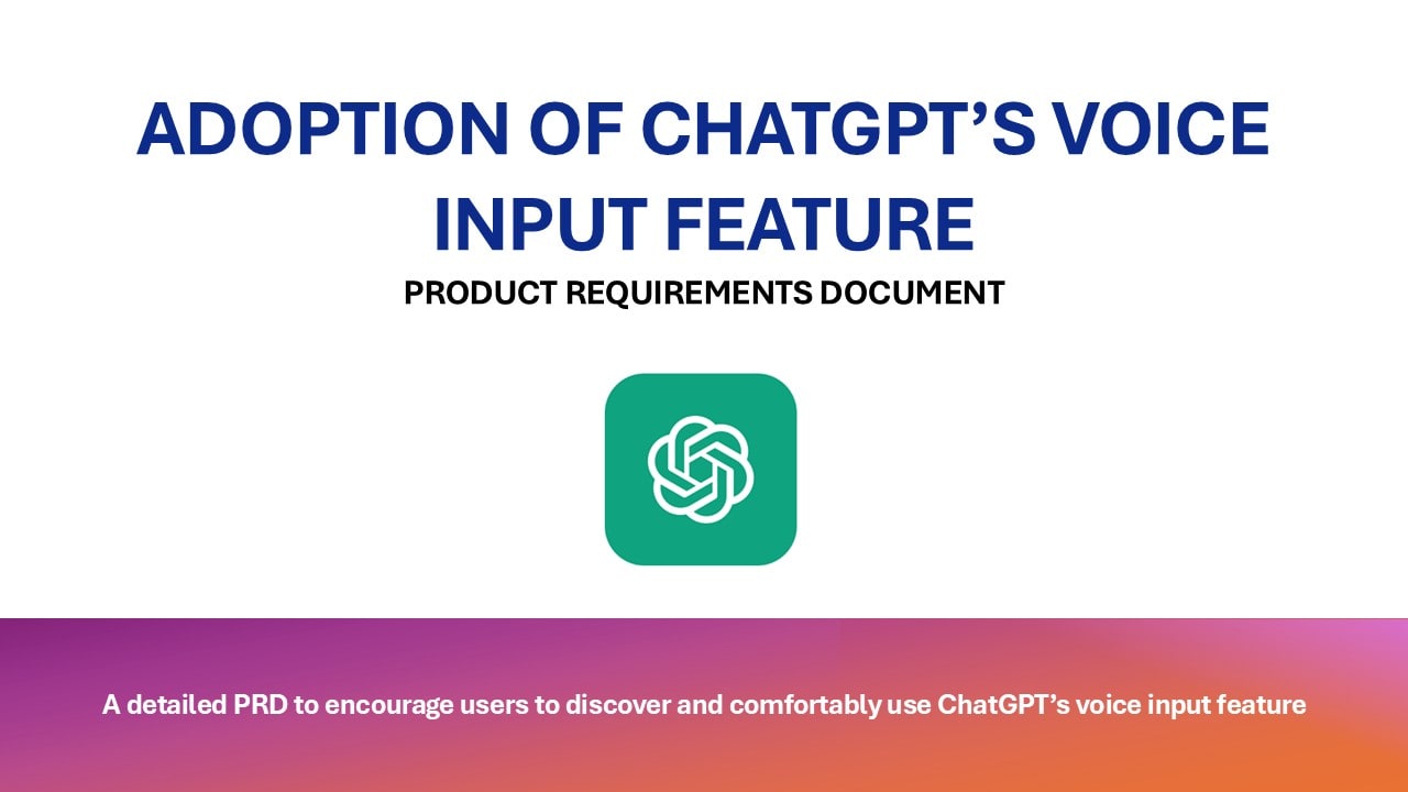 This project focused on increasing the adoption of ChatGPT’s voice input feature by identifying why high-intent users rarely use it despite being aware of it. Over the course of about 1–2 weeks, I conducted user research, including surveys and behavioral analysis, to uncover key barriers such as social discomfort, privacy concerns, and perceived inaccuracy. This was an independent product case study, where I defined problem statements, target users, success metrics, and prioritized solutions using structured frameworks like RICE scoring.