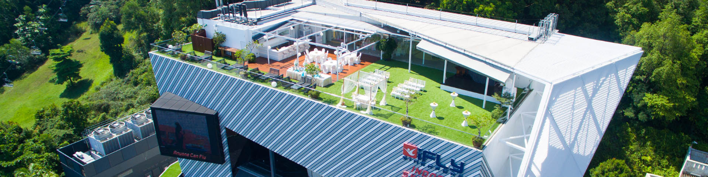 Sky Garden is an event space at iFly Singapore rooftop where dream weddings and inspiring events come alive. They offer stylish indoor spaces as well as a breezy rooftop alfresco area allowing you to soak in the true island life.