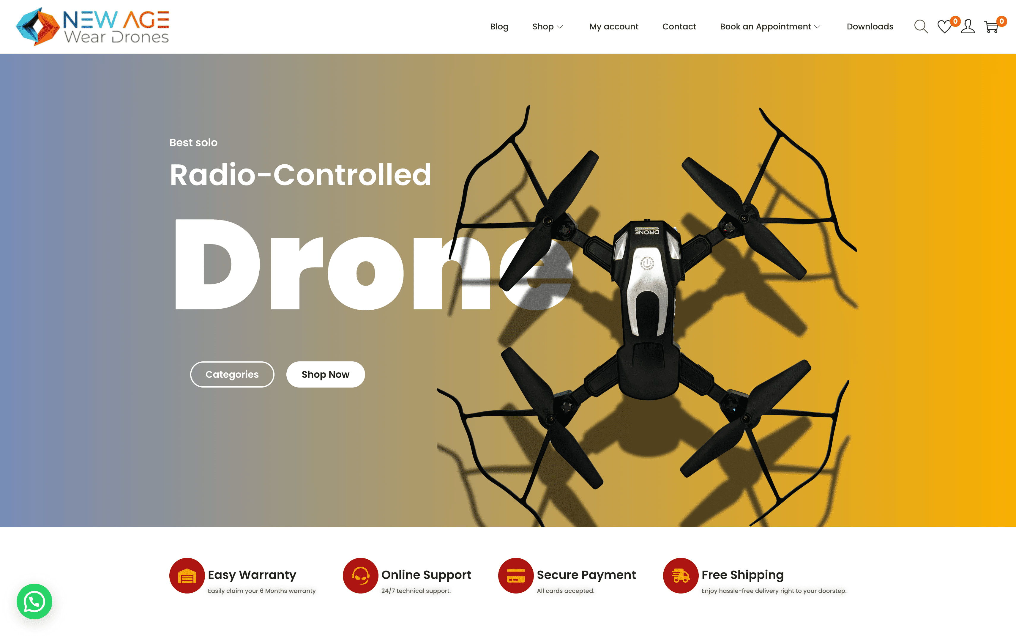 The NewAgeWear Website was conceptualized, designed, and launched as the primary D2C channel for our drone product line. The goal was to create a seamless e-commerce experience with a focus on conversion optimization, traffic scalability, and user engagement.