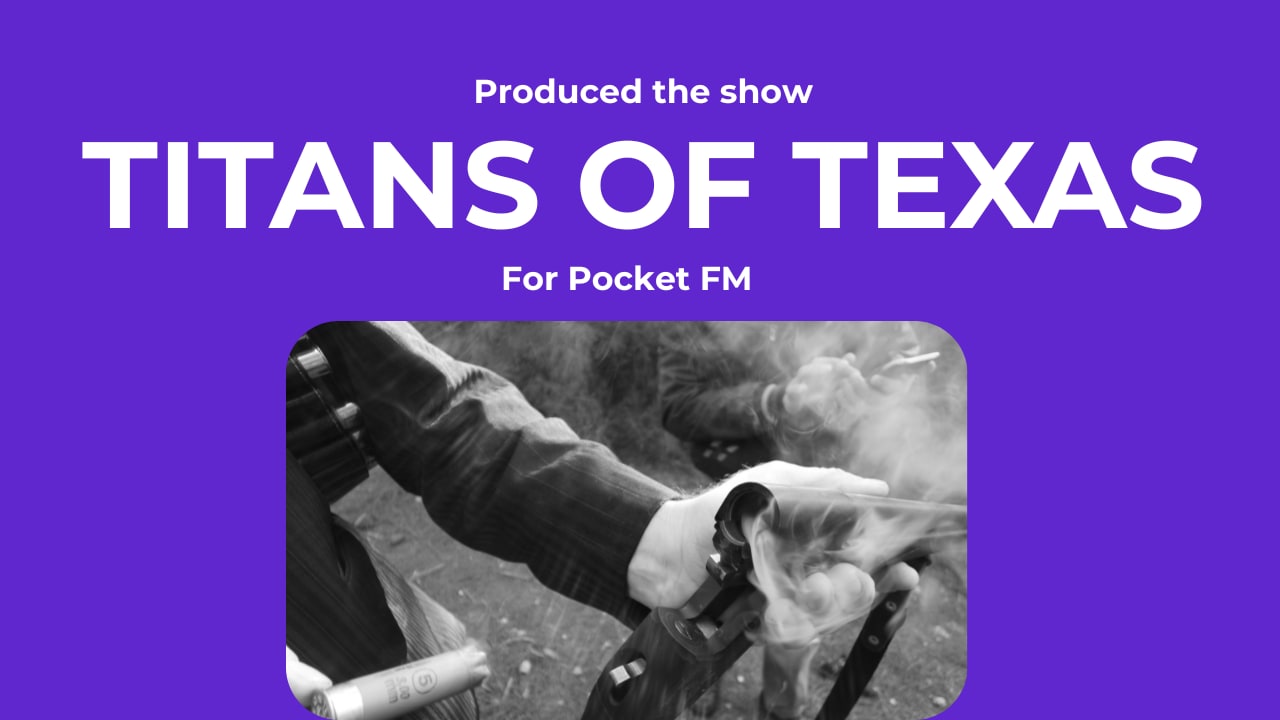 I am the producer for this voice-over artist-led show 'Titans of Texas'. I was involved with selecting the right VOA according to the story, working with editorial review to get the story right, providing creative review about the sound design of the show and getting the show released.