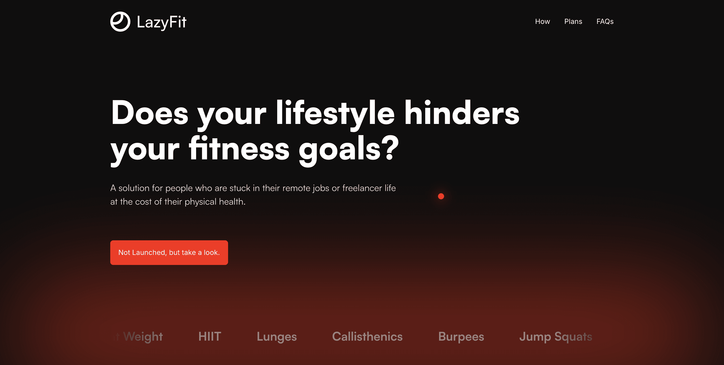 A solution for people who are stuck in their remote jobs or freelancer life at the cost of their physical health. Introducing "LazyFit", is not a revolutionary product. It's practically a library of home workout exercises with or without equipment, helping you achieve your fitness goals.