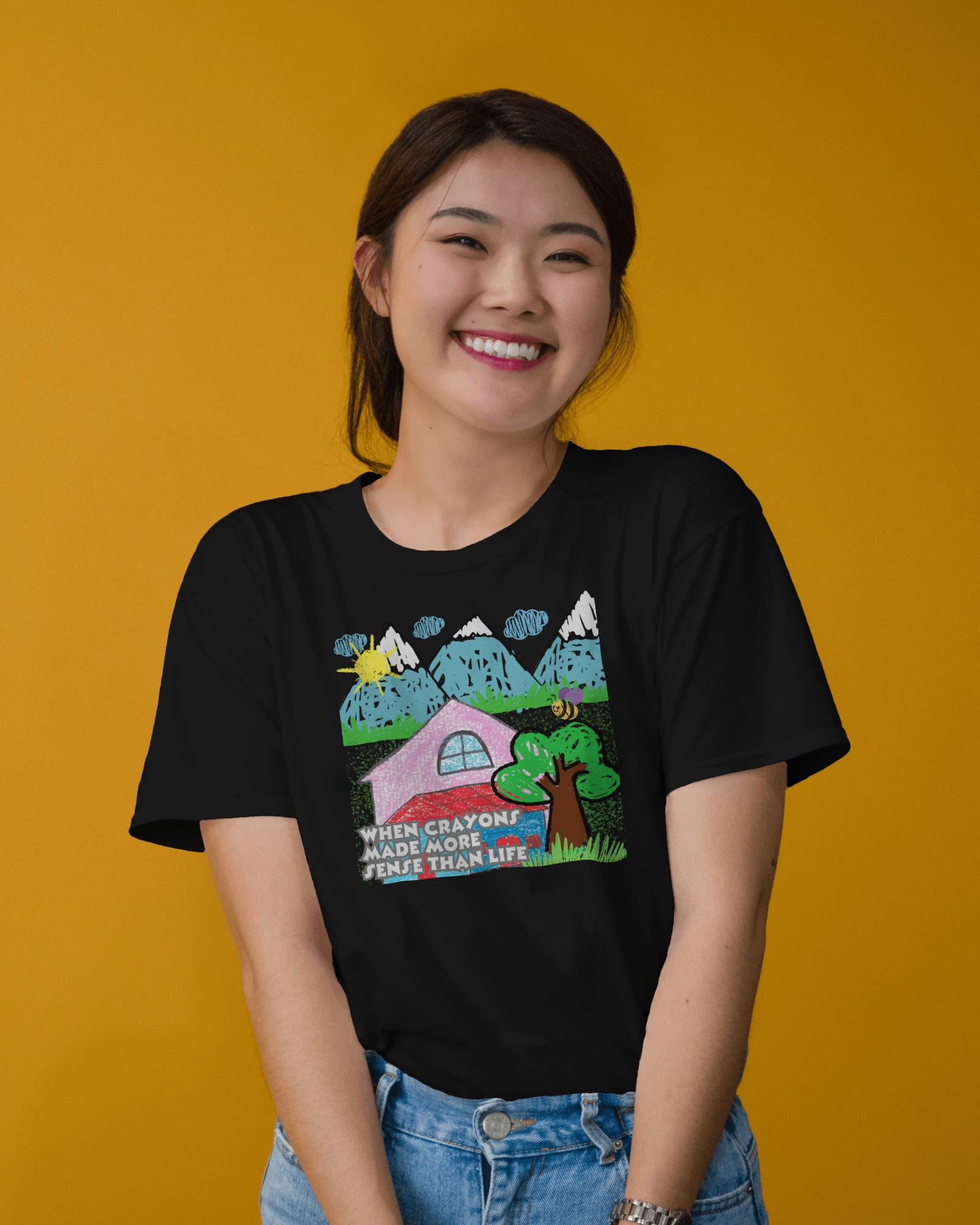 "When crayons made more sense than life." This T-shirt design is more than just colors and prints — it’s a feeling. I used the raw, imperfect charm of kids' crayon drawings — the kind we all made once, with mountains, clouds, a house, a tree, and a sun. Simple, honest, and full of imagination. Through this, I wanted to bring out that phase of life where things felt lighter and made more sense… before adulthood stepped in. This design is close to my heart — not just for its style, but for the story it tells. If it makes you smile, pause, or remember something — then it’s done its job. #DesignWithMeaning #TshirtArt #ChildhoodMemories #StreetwearDesign #FashionIllustration #WearYourStory