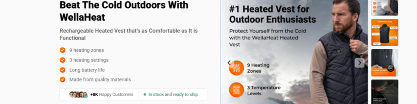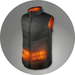 The WellaHeat Heated Vest features built-in carbon fiber heating elements strategically placed across the chest and back.