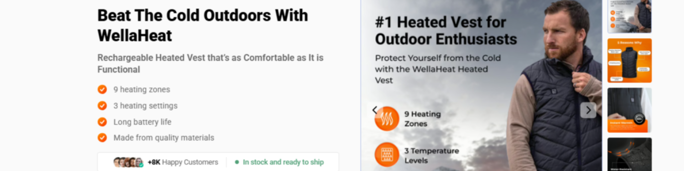 The WellaHeat Heated Vest features built-in carbon fiber heating elements strategically placed across the chest and back.