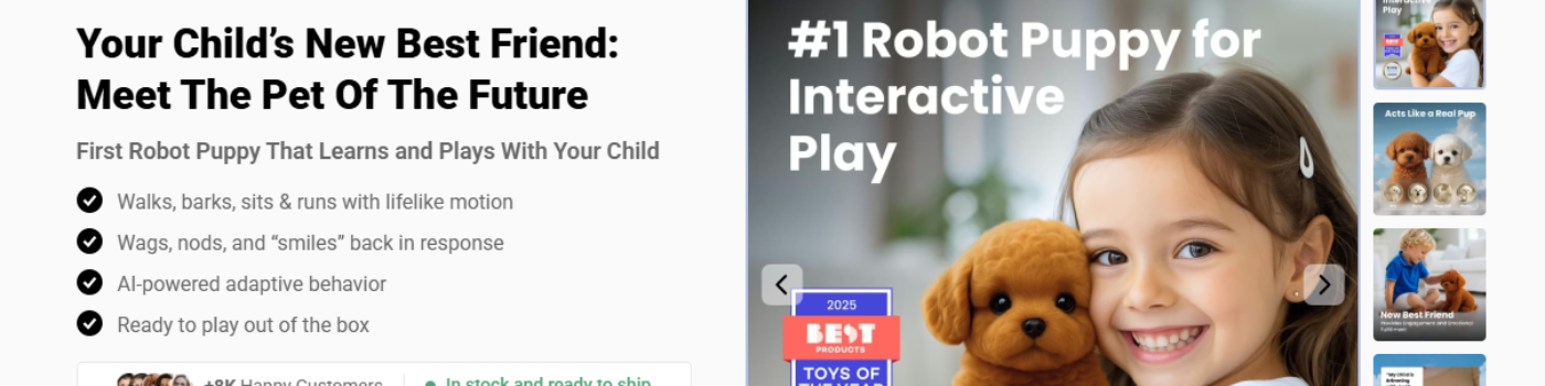 The Wuffy Robot Puppy is an interactive robotic dog that uses smart sensors and artificial intelligence to respond to touch, voice commands, and movement.