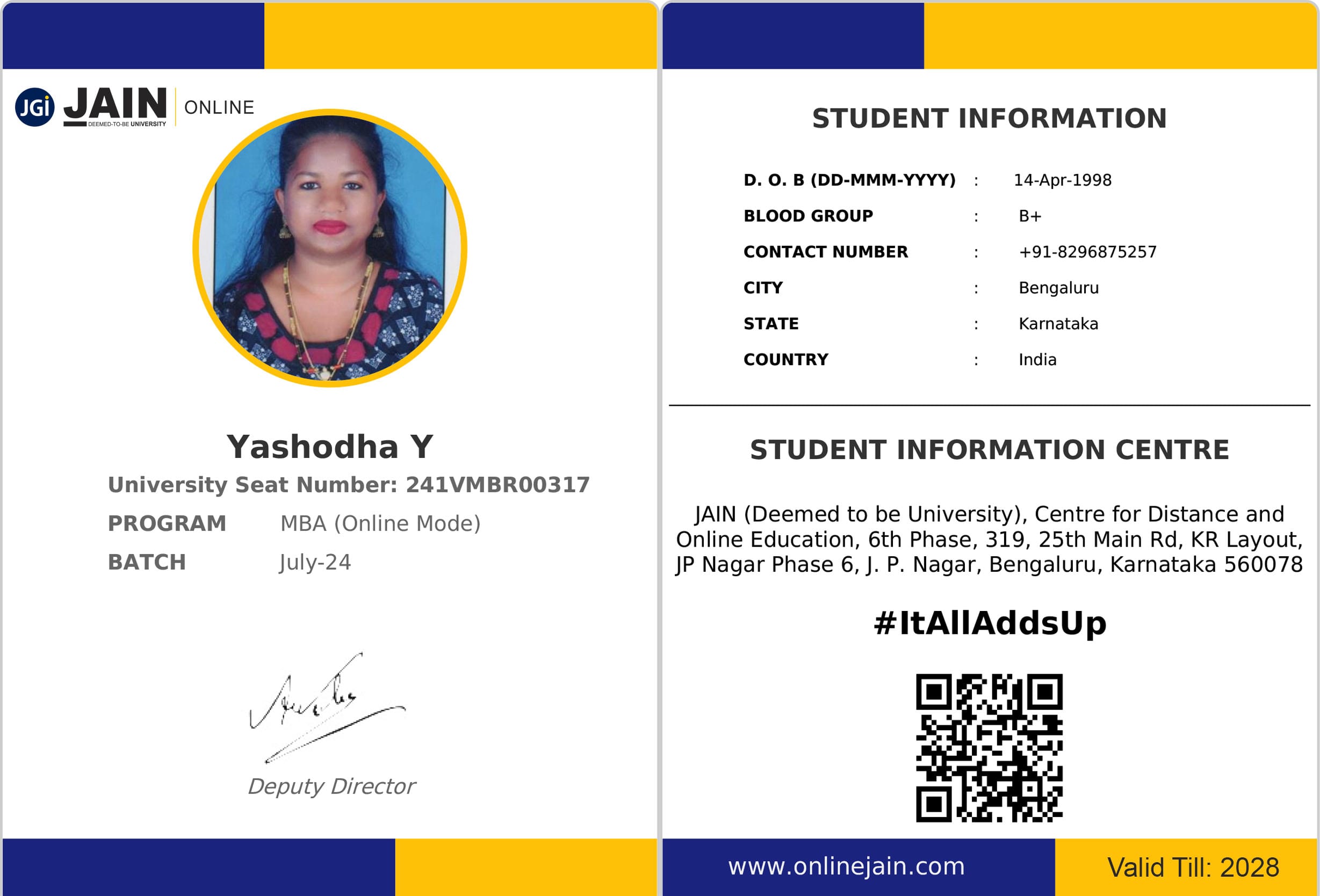 I am pleased to share that I have begun a new academic journey by enrolling in the MBA (Finance and Marketing) postgraduate program at Jain University. This program marks an important step in enhancing my managerial, financial, and strategic skills to support my long-term career growth.